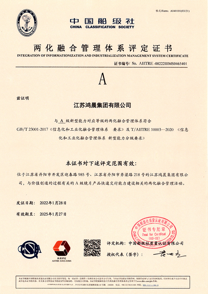 鴻晨光學(xué)全資收購CONVEXOPTICS Co., Ltd.公司獲得ISO14000環(huán)境體系認(rèn)證,贏得了歐美客戶的認(rèn)可,并取得江蘇省視光學(xué)產(chǎn)品質(zhì)量信用證書。